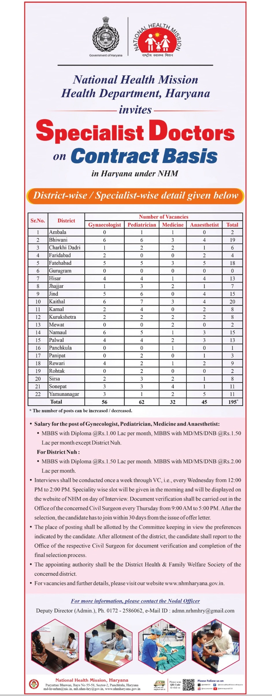 NHM Haryana Specialist Doctors Recruitment 2026 Notice